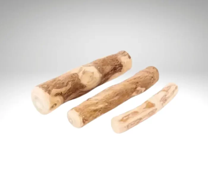 Dank seiner hohen Dichte bietet Kaffeeholz ein langanhaltendes und befriedigendes Kauvergnügen, ideal für Hunde, die gerne ausgiebig nagen. Beim Kauen werden kleine Naturfasern freigesetzt, die die Zähne mechanisch reinigen und wie Zahnseide wirken. Zusätzlich stärkt dies die Kiefermuskulatur und trägt auf natürliche Weise zur Reduzierung von Zahnbelag bei.