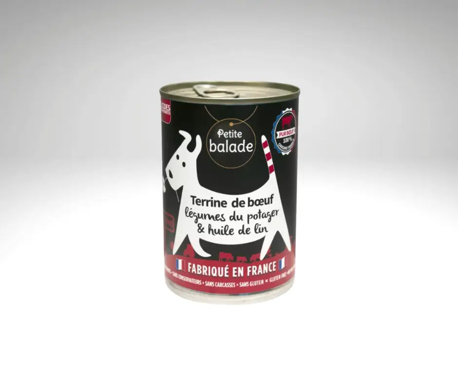 Additionally, you can also offer this Beef Terrine to weaned puppies, taking care to adjust the quantities for a perfect balance. All you have to do is spoil your faithful companion and surprise him with the original terrines from the Petite Balade range. This wet food also allows you to ensure his hydration when temperatures rise. You can add a little to beef hooves, for example. Then freeze them to make delicious original ice creams.Serve as is at room temperature. After opening, keep refrigerated for 24 hours.Suggestion for him
