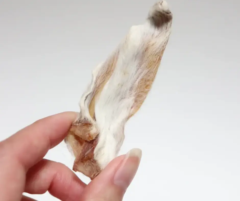 Les Oreilles de Lapin avec Poils apportent des protéines de qualité, peu de matières grasses et des fibres naturelles provenant des poils. Elles aident à nettoyer les dents, renforcent la mâchoire et soutiennent le système digestif.